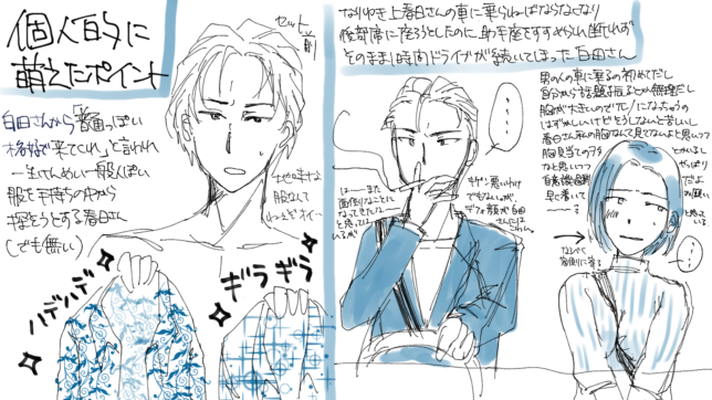 ・表紙:クリスマスに全体絵を公開しました!二人の表情(椎名ニキは攻め…!)、手の感じ、ロゴ、飛び交うハート…この企画のコンセプトがこれでもか!と詰まったまさに表紙にふさわしいイラストでした!ごくりさんありがとう!!!